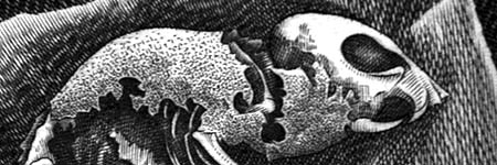 Avbryts samtalet, ett närmast meditativt tillstånd mellan konstnären och bilden, försvinner också magin i arbetsprocessen. Det intuitivt utförda arbetet reduceras till hantverk. Eftertanke och koncentrerad närvaro tenderar att omfatta allt färre verksamheter i vår tid, där offren på Tidsgudens altare blir alltmer absurda. Då kan arbetet med kopparsticket ibland kännas som en motståndshandling. Att arbeta med sina egna inre bilder, och långsamt se dem framkallade, är att vända blicken mot ett centrum inom sig själv. En akt av självupptagenhet, men samtidigt en möjlighet att föreställa sig omvärlden och sin egen position. Där gestaltning ger möjlighet till insikt, och utifrån denna infoga sig själv i ett större sammanhang. De tankeskärvor och bildfragment som oftast utgör startpunkten in till bilden kan i gynnsamma fall växa och konkretisera sammanhang som varit dunkla eller förblivit oåtkomliga. En vattenpöl kan återspegla en vidare himmel. Kanske en ensam bild kan återspegla en gemensam verklighet? |